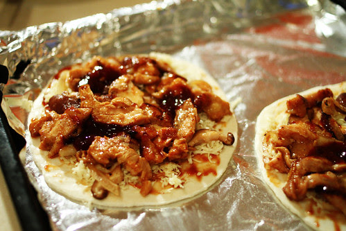 ...and add chicken slices and more BBQ sauce (be generous) on top.